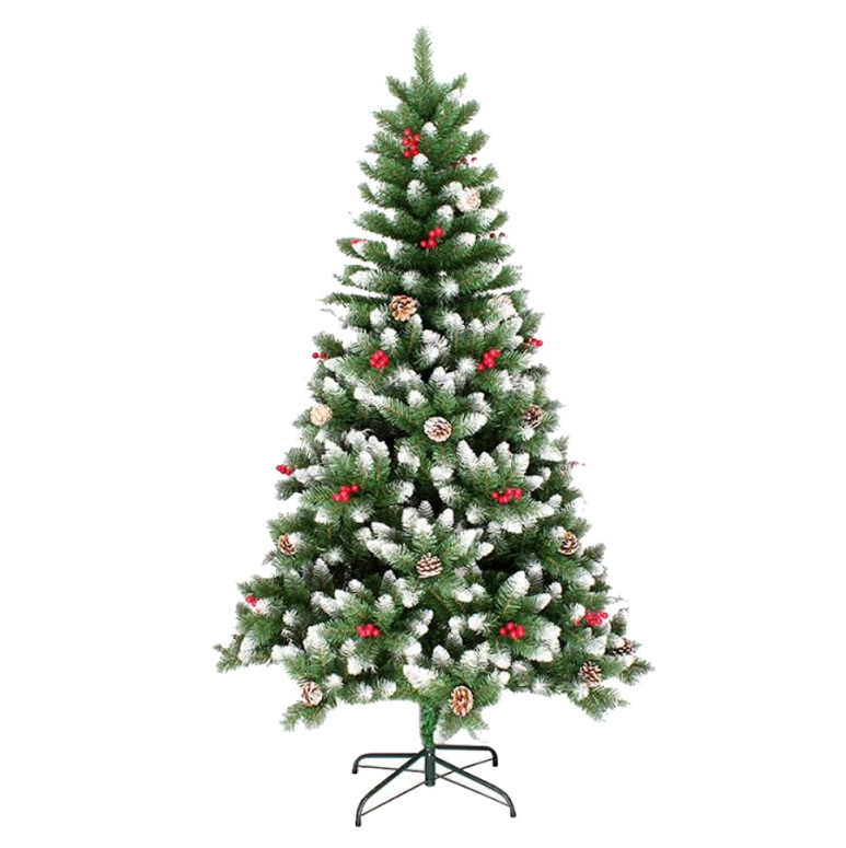 ნაძვის ხე დათოვლილი ბოლოებით, გაფორმებული გირჩებით და კენკრით. გამძლე დრეკადი მეტალის ტოტებით და ჯანმრთელობისთვის უსაფრთხო მასალისგან დამზადებული წიწვებით. მეტალის მყარი სადგამით და მთავარი ღერძით.
