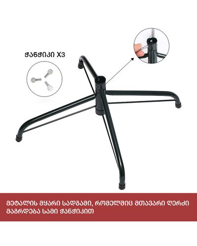 - გამძლე დრეკადი მეტალის ტოტებით და ჯანმრთელობისთვის უსაფრთხო მასალისგან დამზადებული წიწვებით
