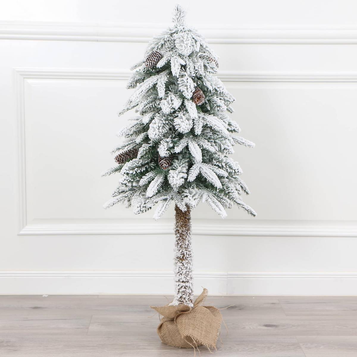 - ნაძვის ხე დათოვლილი ბოლოებით, მაღალ ფეხზე,ტომარაში ;