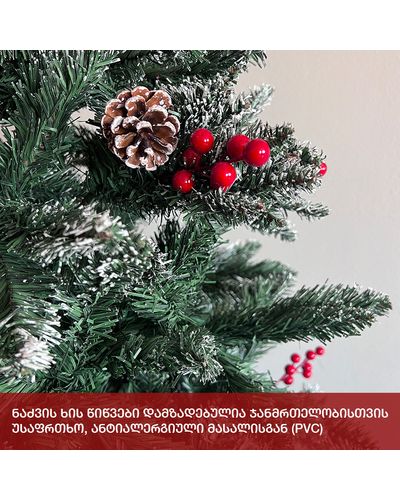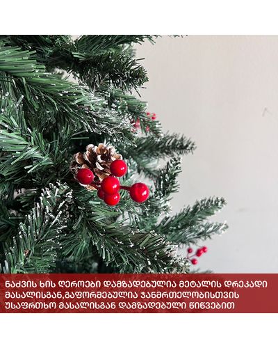 - გამძლე დრეკადი მეტალის ტოტებით და ჯანმრთელობისთვის უსაფრთხო მასალისგან დამზადებული წიწვებით.
