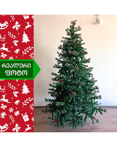 - ნაძვის ხე, გაფორმებული გირჩებით და კენკრით;