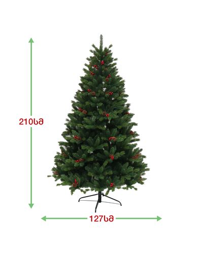 - ნაძვის ხე, გაფორმებული გირჩებითა და კენკრით;
