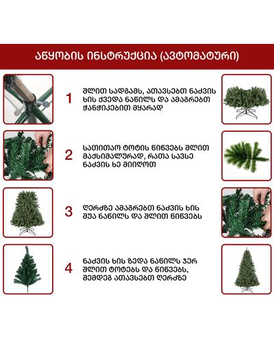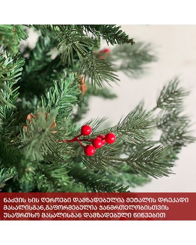 - გამძლე დრეკადი მეტალის ტოტებით და ჯანმრთელობისთვის უსაფრთხო მასალისგან დამზადებული წიწვებით;