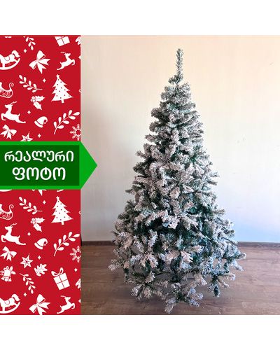- დათოვლილი ნაძვის ხე გამძლე დრეკადი მეტალის ტოტებით და ჯანმრთელობისთვის უსაფრთხო მასალისგან დამზადებული წიწვებით;