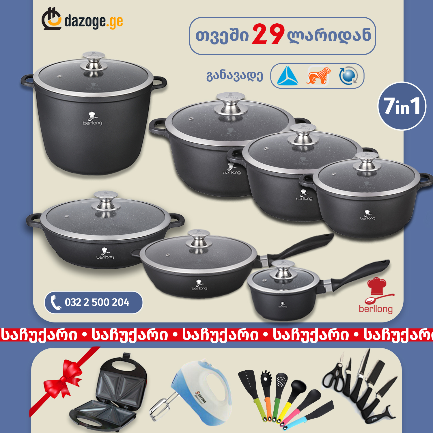 Berllong 7IN1 Classic ბიო-გრანიტის ქვაბების ნაკრები