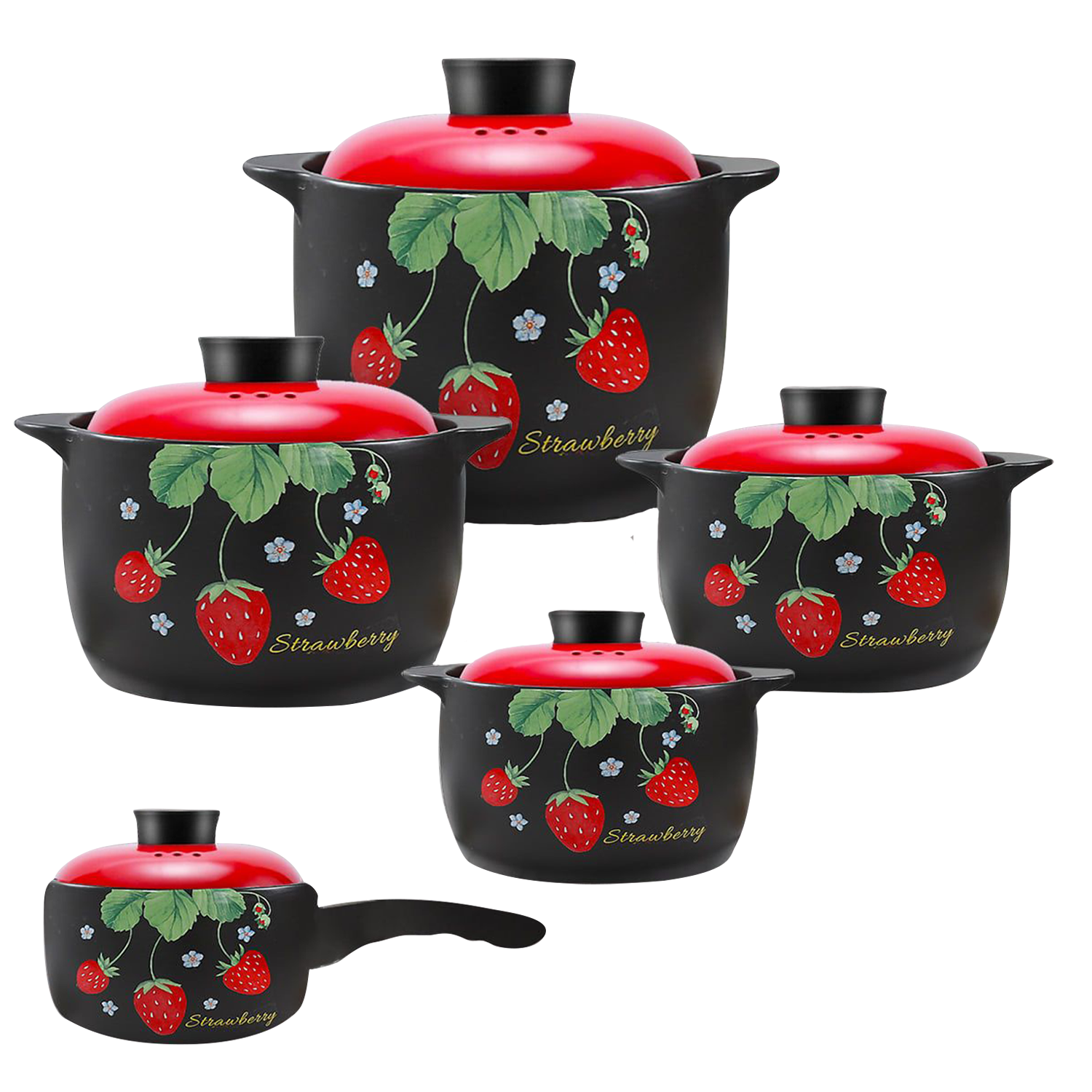 (FK-Q)Berllong-ის ნატურალური ქვის ქვაბების ნაკრები 5in1 red