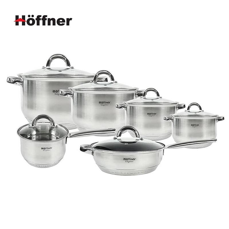 Hoffner 12PCS HF-2118 Silver უჟანგავი ფოლადი ქვაბების ნაკრები