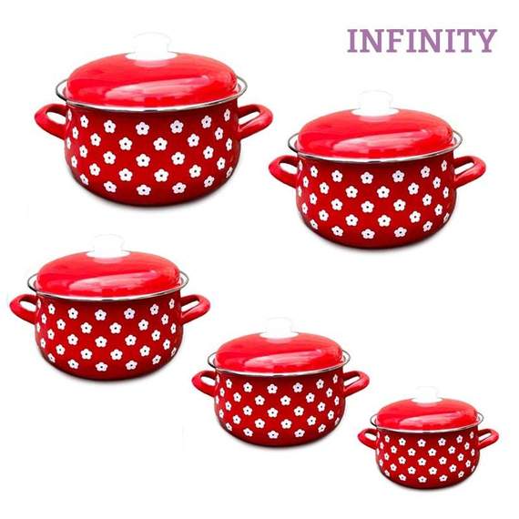 Infinity 5PCS Flowers Red&White ემალის ქვაბების ნაკრები
