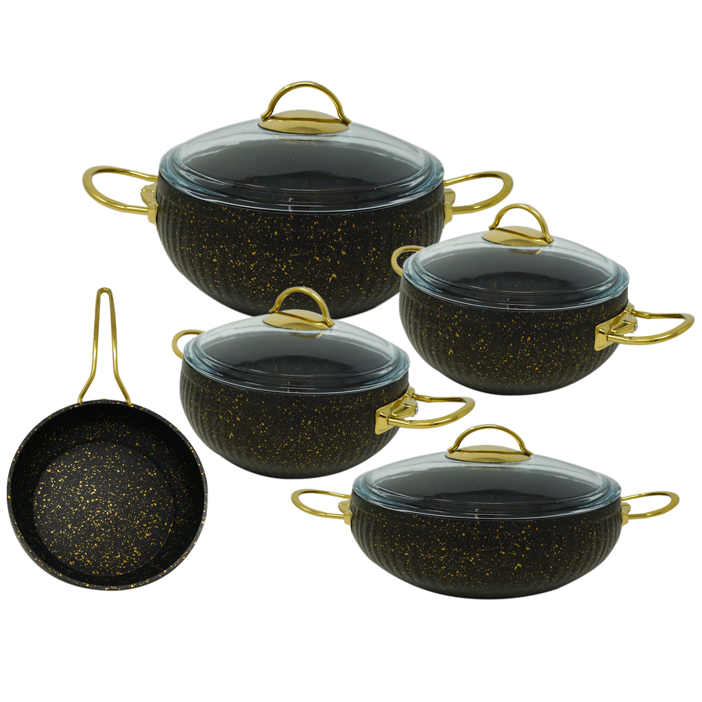 Lines Black 5IN1 გრანიტის ქვაბების ნაკრები უკანტო