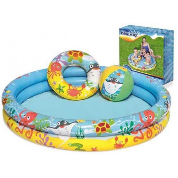 ბრენდი: Bestway; მოდელი: 51124; ტიპი: საბავშვო; ფორმა: მრგვალი; დიამეტრი: 122; სიმაღლე: 20 სმ; ტევადობა: 29 ლ; მასალა: PVC (პოლივინილი)