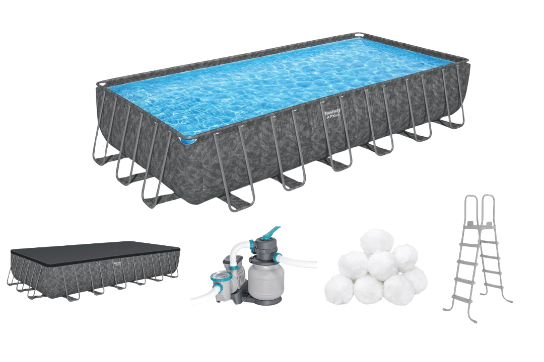 Bestway 561KA მართკუთხედი კარკასული აუზი 5.49m x 2.74m x 1.32m 16477ლ ქვიშის ფილტრით და კიბით