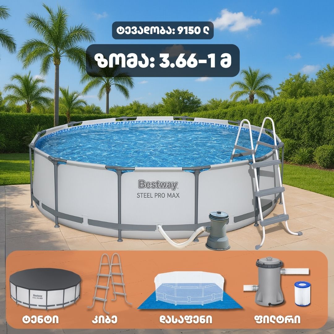 Bestway 56260 (366x100სმ) კარკასული აუზი პრემიუმ პაკეტი