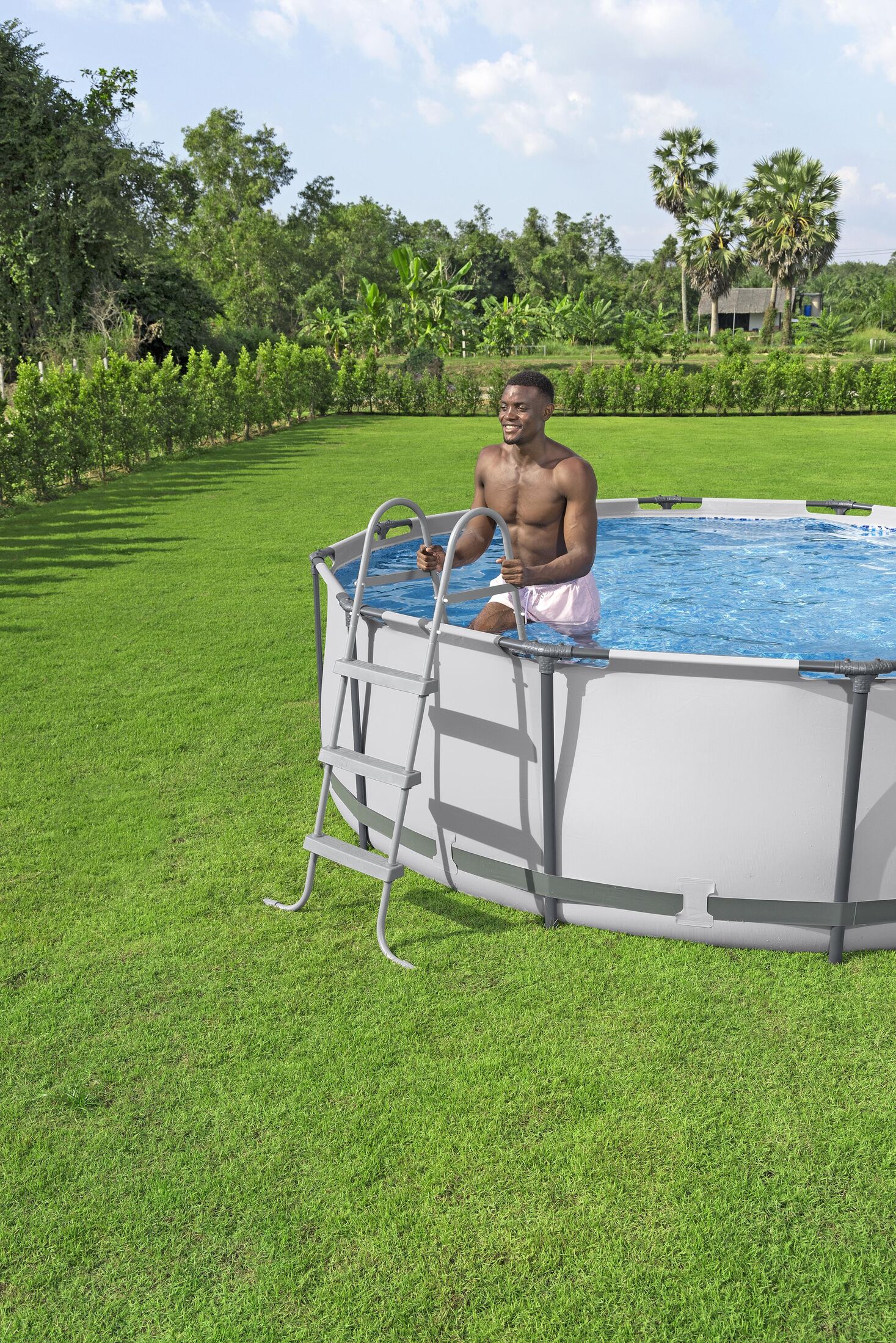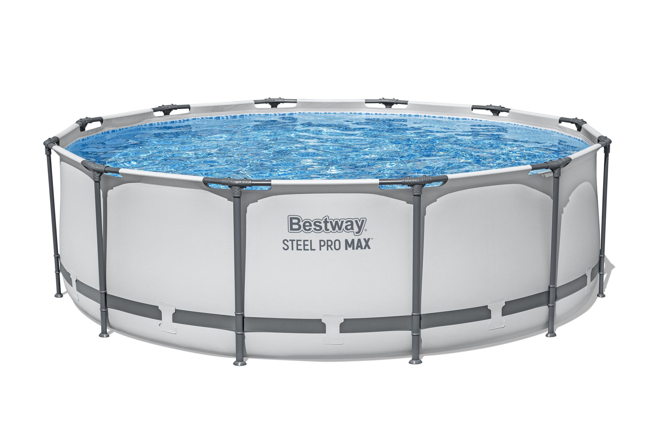 ლამაზი და გამორჩეული დიზაინის კარკასული აუზი Bestway 56418 მომრგვალებული ფორმისაა და ყველა ეზოსთვის შესაფერისი იქნება.