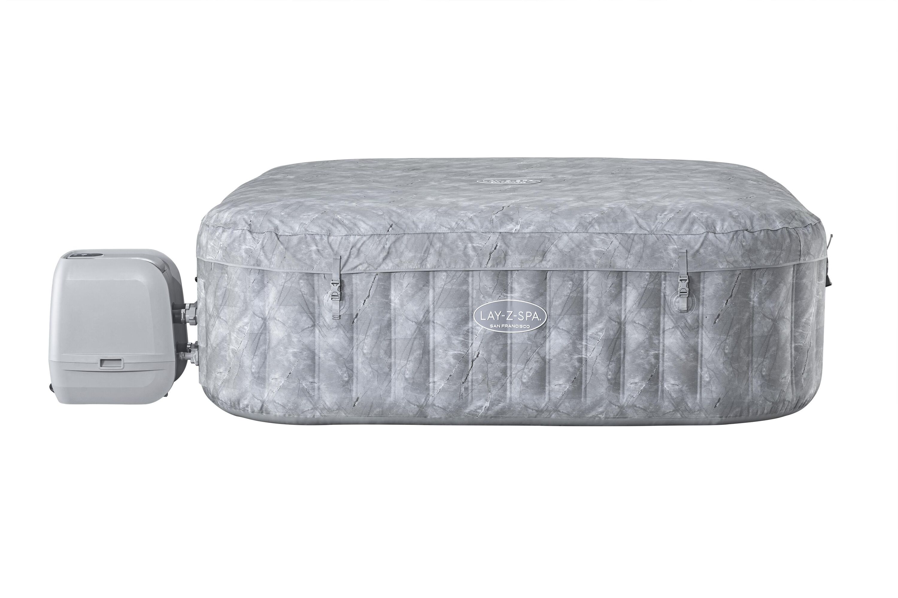 Bestway 6001Q Lay-Z-Spa “San Francisco” 2.30მ×2.30მ×71 სმ კვადრატული გასაბერი ჯაკუზი (7 ადგილი), ნაცრისფერი მარმარილო