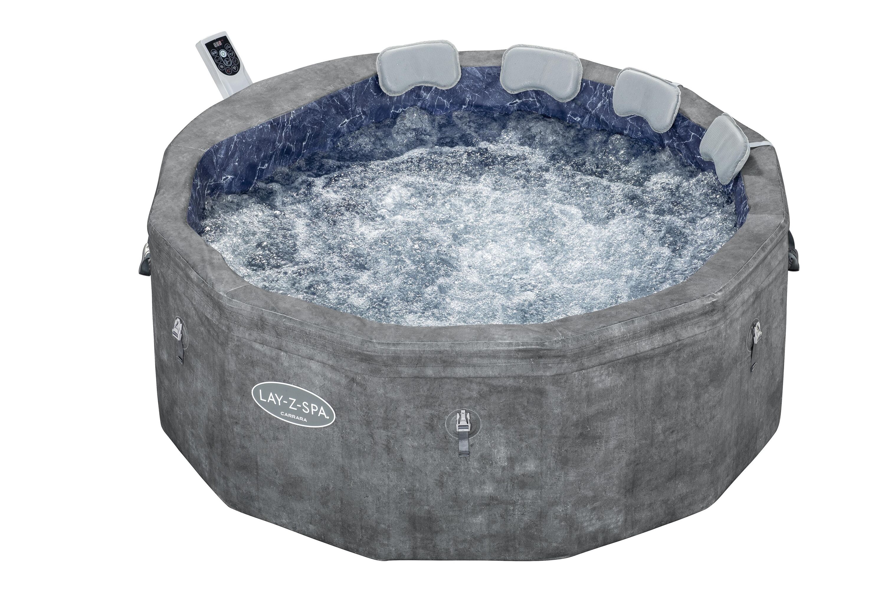 LAY-Z-SPA® Carrara არის მაღალი კლასის, ენერგოეფექტური გასაბერი ჯაკუზი, რომელიც შექმნილია სრული რელაქსაციისთვის. ნაცრისფერი მარმარილოს ეფექტის მქონე დიზაინი და მოწინავე ტექნოლოგიები საშუალებას გაძლევთ მოაწყოთ პროფესიონალური სპა ცენტრი საკუთარ ბაღში, ტერასაზე ან აივანზე.