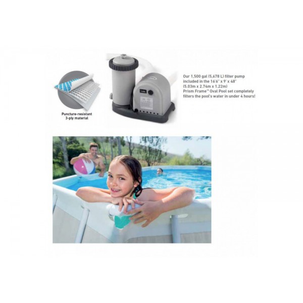 ბრენდი: Intex; მოდელი: 26798np; ფერი: ნაცრისფერი; ტიპი: კარკასული; ფორმა: ოვალური; ფილტრი: კი; სიგრძე: 610; სიგანე: 305 სმ; სიმაღლე: 122 სმ; ტევადობა: 18202 ლ; მასალა: სამფენიანი PVC (პოლივინილქლორიდი); კიბე: კი; გადასაფარებელი ტენტი: კი; აუზის ქვეშ დასაფენი: კი