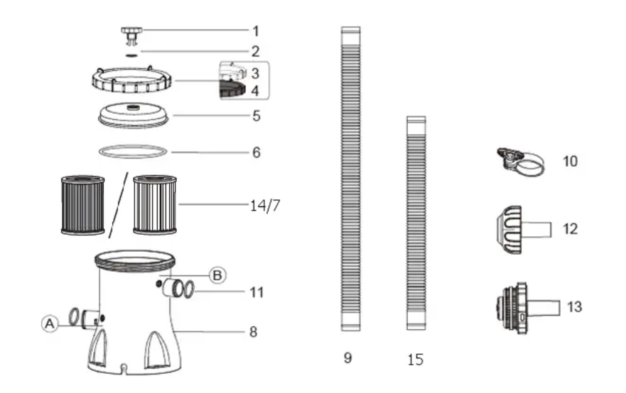 - გამოიყენება აუზებისთვის: 1100-14300 ლიტრამდე