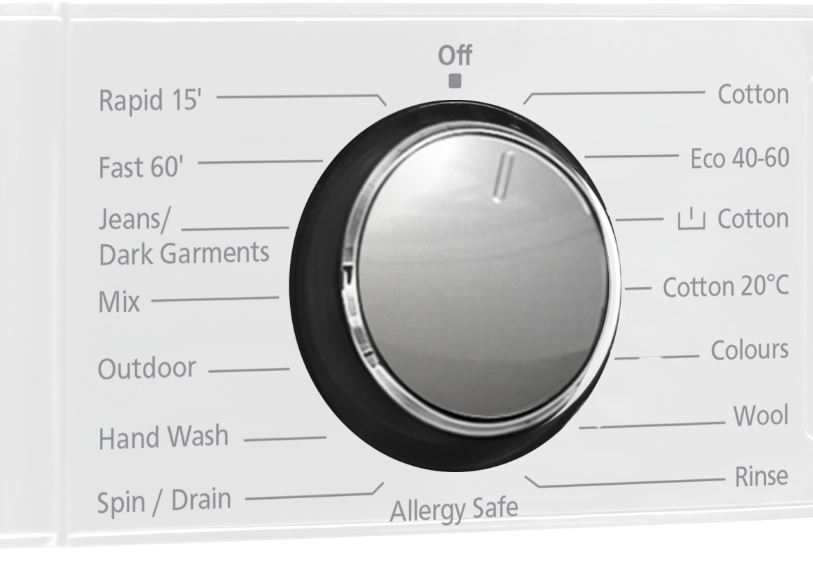 - მართვა: ელექტრონული (პროგრამების შესარჩევი მბრუნავი ღილაკი)