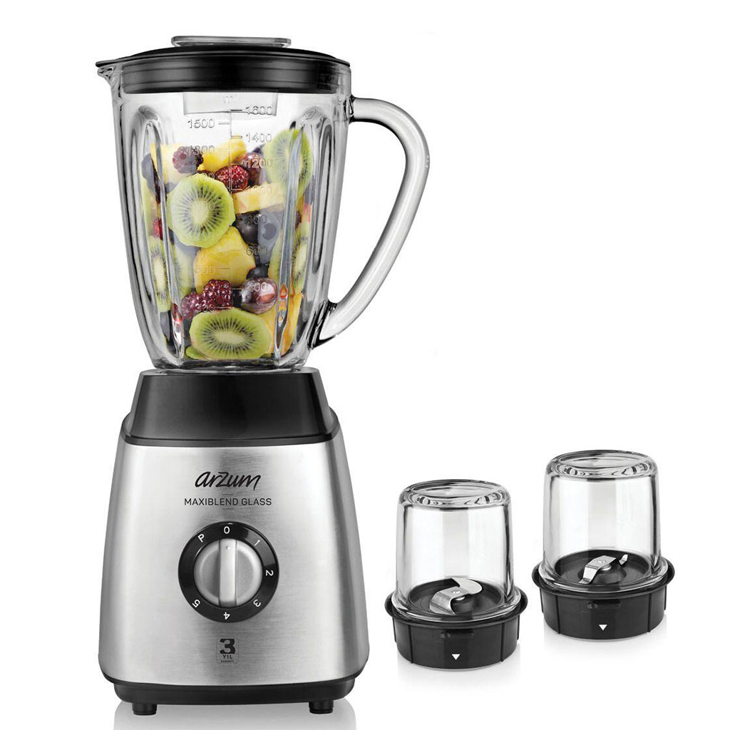 ბრენდი: Arzum; მოდელი: AR1056; ფერი: ვერცხლისფერი / შავი; გარანტია: 12 თვე; ტიპი: სტაციონალური; სიმძლავრე: 600 W; სიჩქარეთა რაოდენობა: 5; ბლენდერის ჭიქის მოცულობა: 1.5 ლ; ძირთადი ფუნქცია: ბლენდერი; ფუნქციები: ადვილად წმენდადი, ბლენდერის საცმი, ბლენდერის ჭიქა, თავსახური, იმპულსური რეჟიმი, ყავის საფქვავი, ყინულის დაჭრა, ჩოფერის საცმი; კორპუსის მასალა: პლასტმასი; ჯამის მასალა: მინა; დანების მასალა: უჟანგავი ფოლადი; კომპლექტაცია: ბლენდერის საცმი, ბლენდერის ჭიქა, თავსახური, ყავის საფქვავი, ჩოფერის საცმი; კვების ტიპი: ქსელის