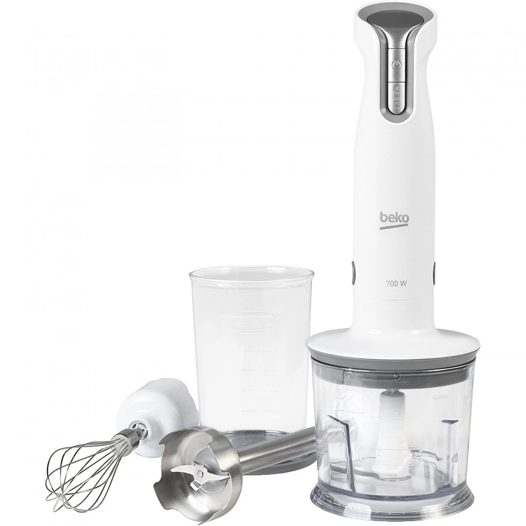 ბრენდი: Beko; მოდელი: HBA 6700 W; ფერი: თეთრი; გარანტია: 12 თვე; ტიპი: ხელის მულტიფუნქციური; სიმძლავრე: 700 W; სიჩქარეთა რაოდენობა: 2; ბლენდერის ჭიქის მოცულობა: 0.7 ლ; ძირთადი ფუნქცია: ბლენდერი, მიქსერი, ჩოფერი; ფუნქციები: ათქვეფა, დაბლენდერება, დაჩოფერება, ტურბო რეჟიმი; კორპუსის მასალა: პლასტმასი; ჯამის მასალა: პლასტმასი; დანების მასალა: უჟანგავი ფოლადი; კომპლექტაცია: ბლენდერის საცმი, ბლენდერის ჭიქა, მიქსერის თავი, ჩოფერი, ჩოფერის საცმი; კვების ტიპი: ქსელის