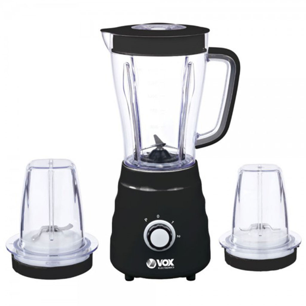 ბრენდი: Vox; მოდელი: TM 6003; ფერი: შავი; გარანტია: 12 თვე; ტიპი: სტაციონალური; სიმძლავრე: 500 W; სიჩქარეთა რაოდენობა: 2; ბლენდერის ჭიქის მოცულობა: 1.5 ლ; დამატებითი ჭიქა/ჯამის მოცულობა: 0.5 ლ; ძირთადი ფუნქცია: ბლენდერი, ყავის საფქვავი; ფუნქციები: დაბლენდერება, დაჭრა, იმპულსური რეჟიმი, ყავის დაფქვა; ჯამის მასალა: პლასტმასი; დანების მასალა: უჟანგავი ფოლადი; კომპლექტაცია: ბლენდერის საცმი, ბლენდერის ჭიქა, თავსახური; ზომა: 20.0 x 17.3 x 37.5 სმ; წონა: 1.6 კგ; კვების ტიპი: ქსელის; სადენის სიგრძე: 0.85 მ