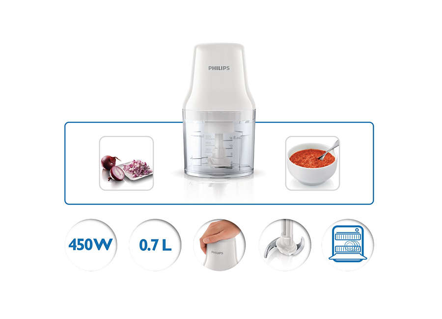 ბრენდი: Philips; მოდელი: HR1393/00; ფერი: თეთრი; ქვეყანა: ჩინეთი; გარანტია: 24 თვე; ტიპი: ჩოფერი; მართვის ტიპი: მექანიკური; სიმძლავრე: 450 W; ჯამის მოცულობა: 0.7 ლ; სიჩქარეების რაოდენობა: 1; ჯამის მასალა: პლასტმასი; დანების მასალა: უჟანგავი ფოლადი; ფუნქციები: ერგონომიული დიზაინი, ჭურჭლის სარეცხ მანქანაში რეცხვის შესაძლებლობა; წონა: 1 კგ; კვების ტიპი: ქსელის