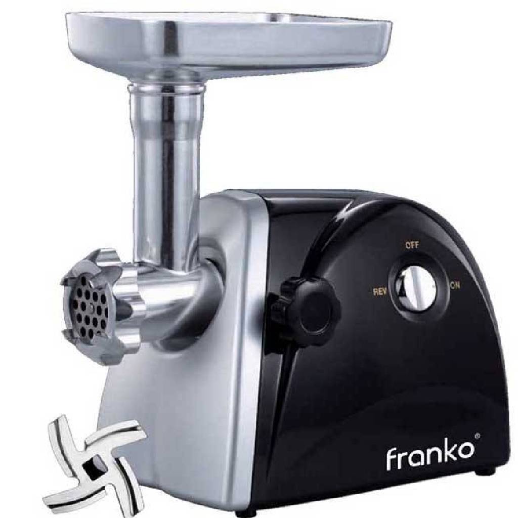 ბრენდი: Franko; მოდელი: FMG-1050; ფერი: შავი; ქვეყანა: ჩინეთი; გარანტია: 12 თვე; ტიპი: ელექტრონული; სიმძლავრე: 2500 W; მწარმადობა: 2 კგ/წთ; რევერსი: კი; დანები: 2ც ქრომირებული მეტალი; ცხაური/ბადე: 2; დამატებითი საცმები: "kebbe"-სთვის; კორპუსის მასალა: პლასტმასი; თეფშის მასალა: მეტალი; კომპლექტაცია: Franko FMG-1025 ხორცსაკეპი, საცმი "Kebbe"-სთვის, საჭრელი დანა, ცხაურა (გისოსი): 2; წონა: 3.8 კგ; კვების ტიპი: ქსელის
